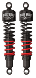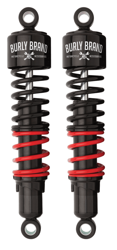 Burly Brand Stiletto Shocks will transform your bike into a precise handling machine. Designed for riders who demand both performance and style, these shockes completely transform your bike's suspension capabilities. Built on a high-performance damper that's been skillfully tuned to mix comfort and control, and encased in a scientifically calibrated spring combination. Smooths out road imperfections while retaining a solid, responsive ride. The main coil absorbs hard impacts and prevents bottoming out, while our characteristic red bottom spring handles lesser strikes, resulting in a smooth but controlled ride. Stiletto Shocks are designed to deliver the ideal balance of aggressive performance and everyday comfort. Take your suspension to the next level.