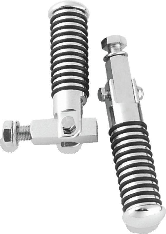 These fold-up pegs match the rider and shifter O-ring pegs. May be mounted from the lower shock stud position or used in custom applications, such as forward controls, highway bars, or fabricated passenger mounts.