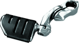 These cruise mounts with positive locking Quick Clamps offer an incredible range of adjustability. The entire assembly may be moved up or down on the engine guard. The arm and footpeg may be further adjusted along a vertical or horizontal arc. A unique clevis permits angle adjustment of the footpeg. The heavy-duty Quick Clamp and sturdy offset arm ensures that the footpegs will clear fairing lowers and will stay where you put them.